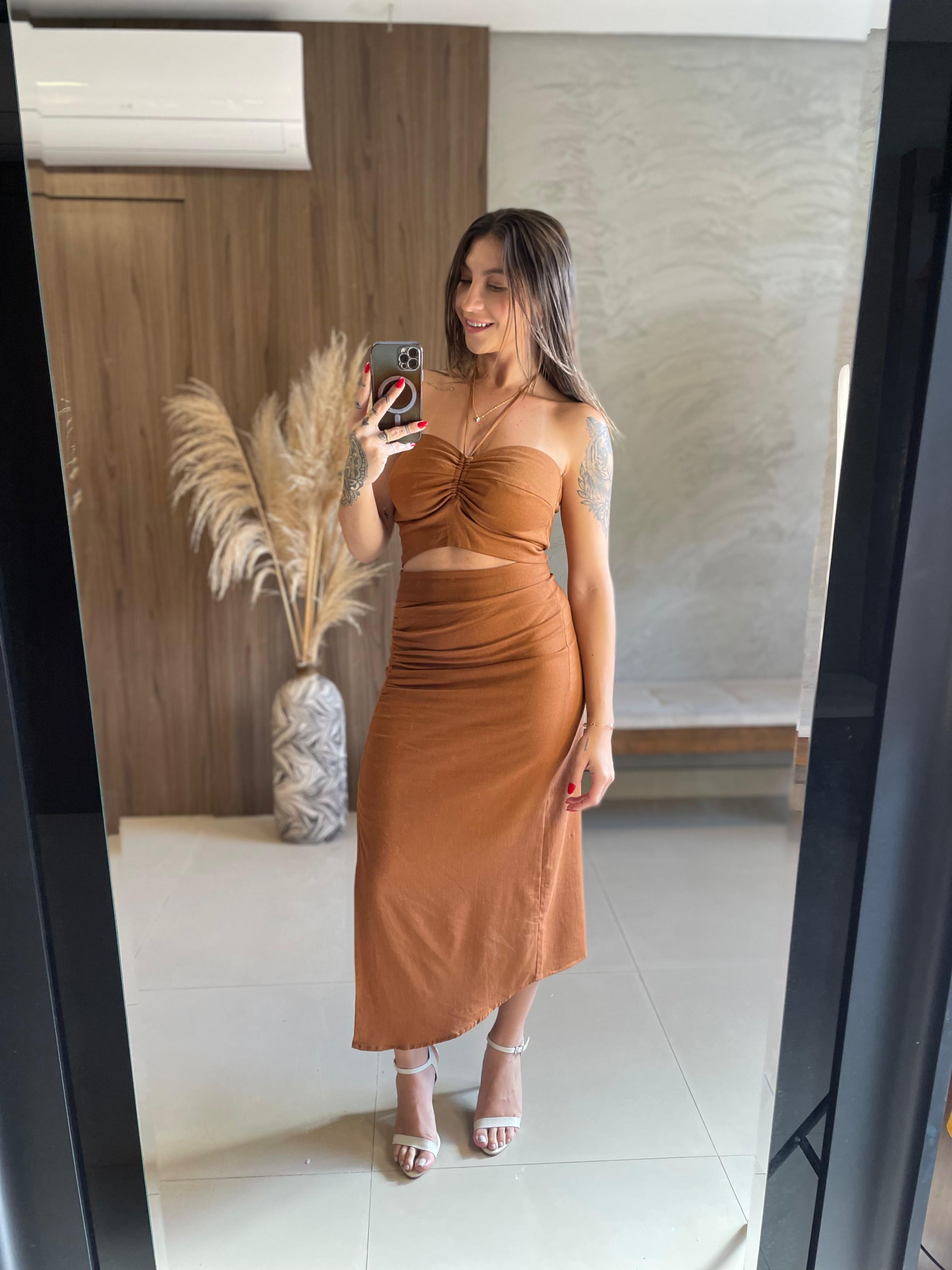 Saia Midi Com Drapeado