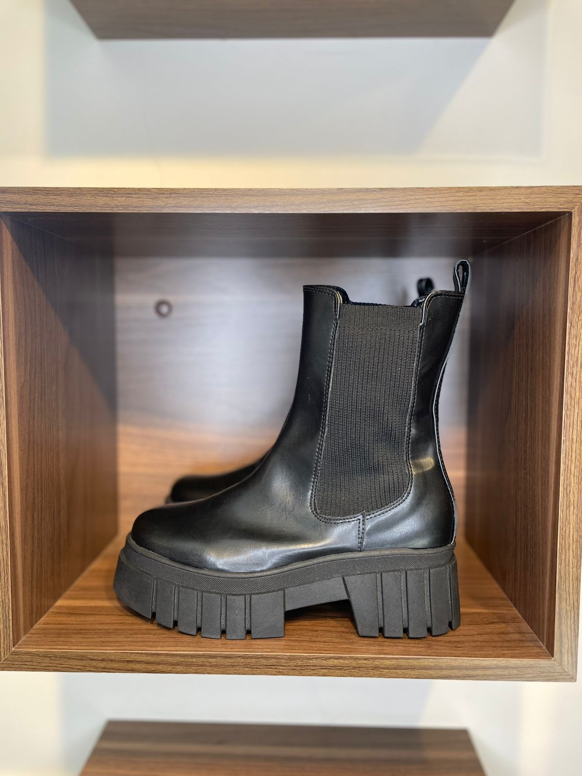 A Bota Marilia tem um design clean e ganha força com o robusto solado tratorado, um ícone do estilo urbano e prático. O cano médio e a ausência de cadarços, com apenas puxadores discretos, garantem um calce fácil e um visual descomplicado. Versátil, ela transita do dia a dia a uma festa a noite!