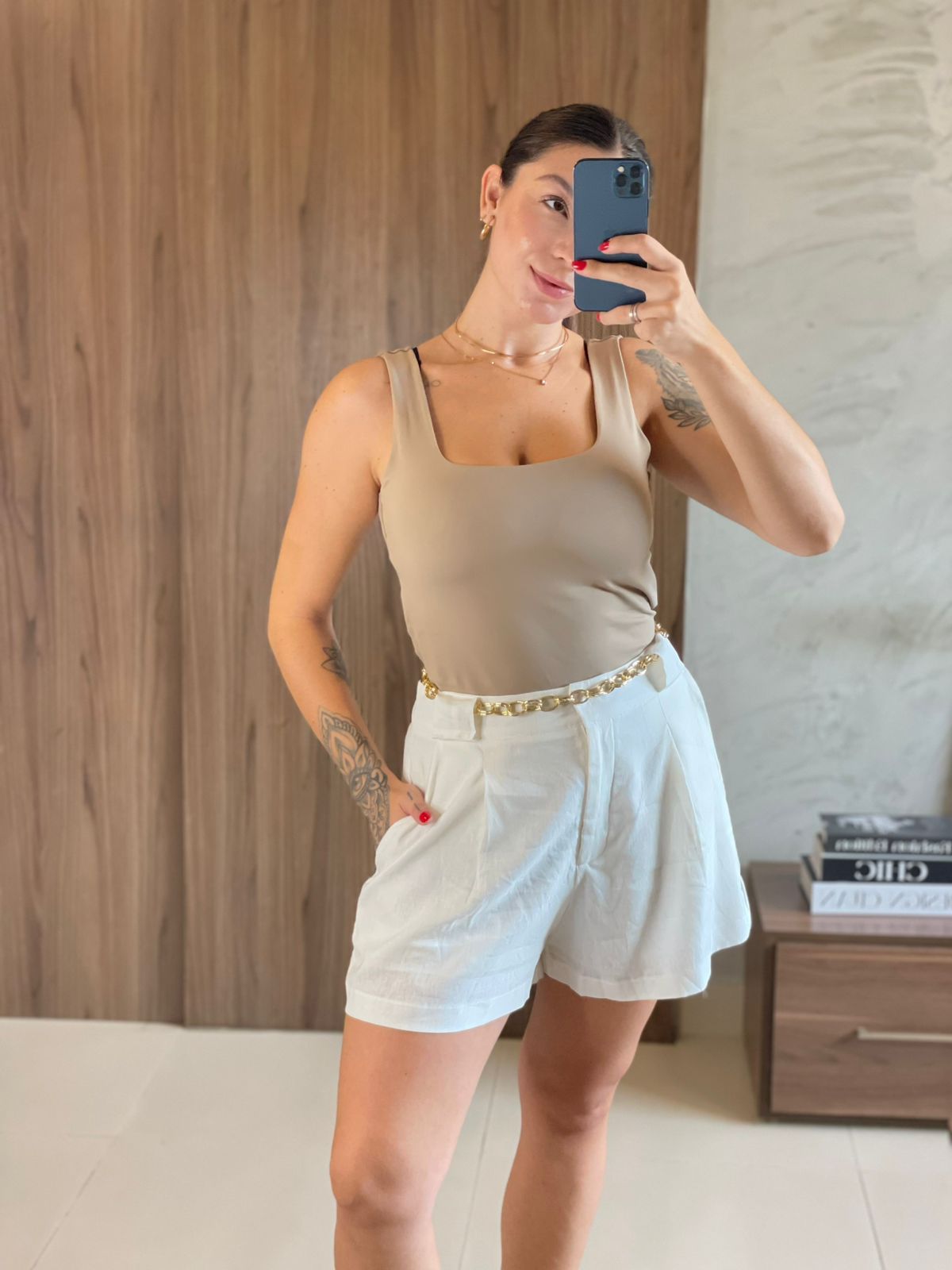 Com um design moderno e confortável, o shorts Manaca é perfeito para os dias mais quentes. Confeccionado em tecido leve e de toque suave, ele combina perfeitamente com a estação. Seu estilo clean e sofisticado é destacado pela cintura alta e pelo cinto marrom que confere um charme extra ao visual.