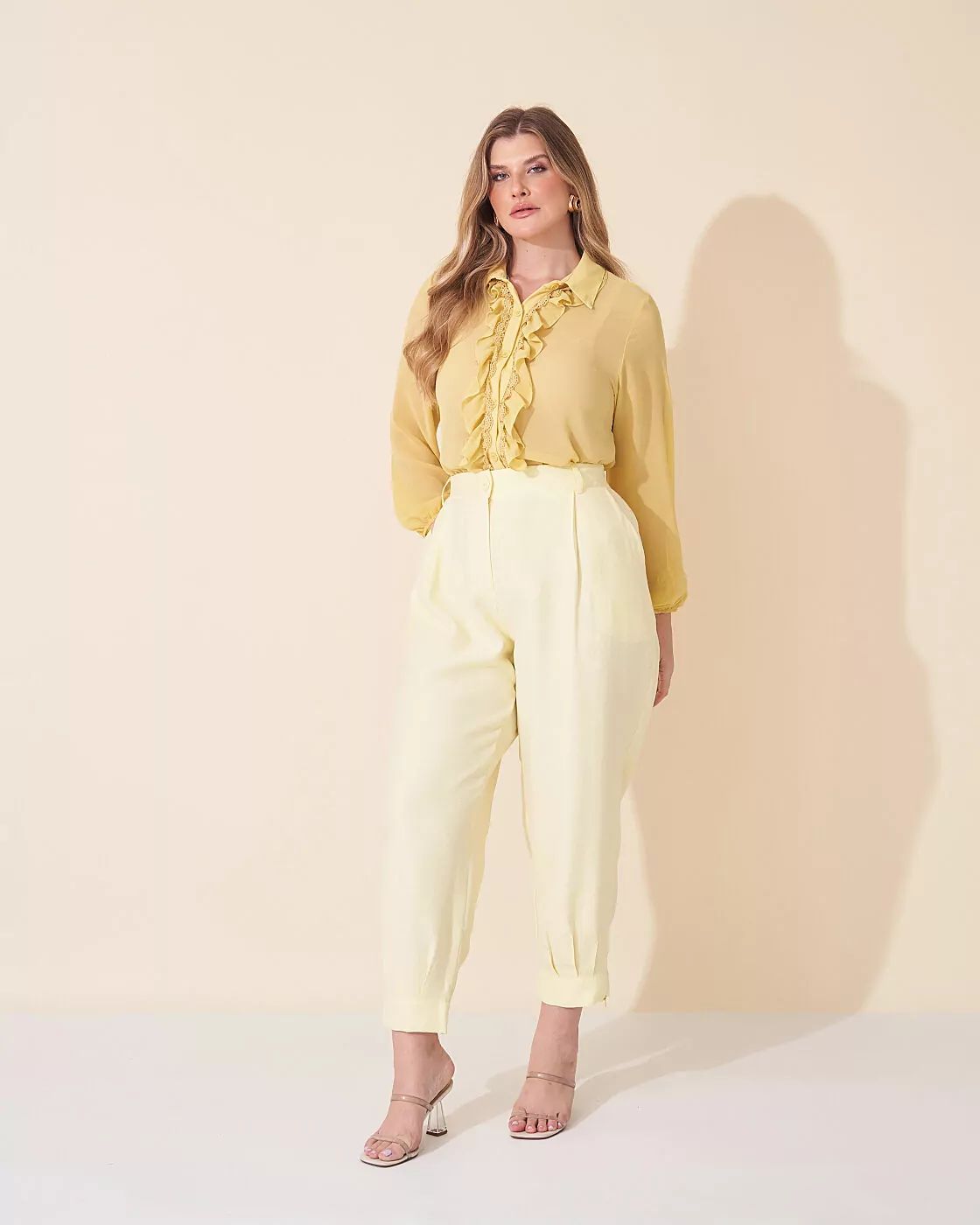 Estilosa e confortável, a calça afunilada amarela plus size é perfeita para quem busca uma peça versátil e moderna. A modelagem afunilada valoriza a silhueta, proporcionando elegância sem abrir mão do conforto. Ideal para criar looks casuais ou combinações mais sofisticadas, acrescentando cor e personalidade ao seu visual.