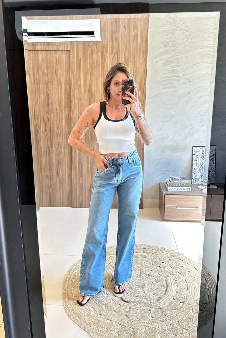 Calça jeans, com caimento clássico e moderno ao mesmo tempo. Versátil e atemporal, é perfeita para criar produções elegantes e descomplicadas no dia a dia.