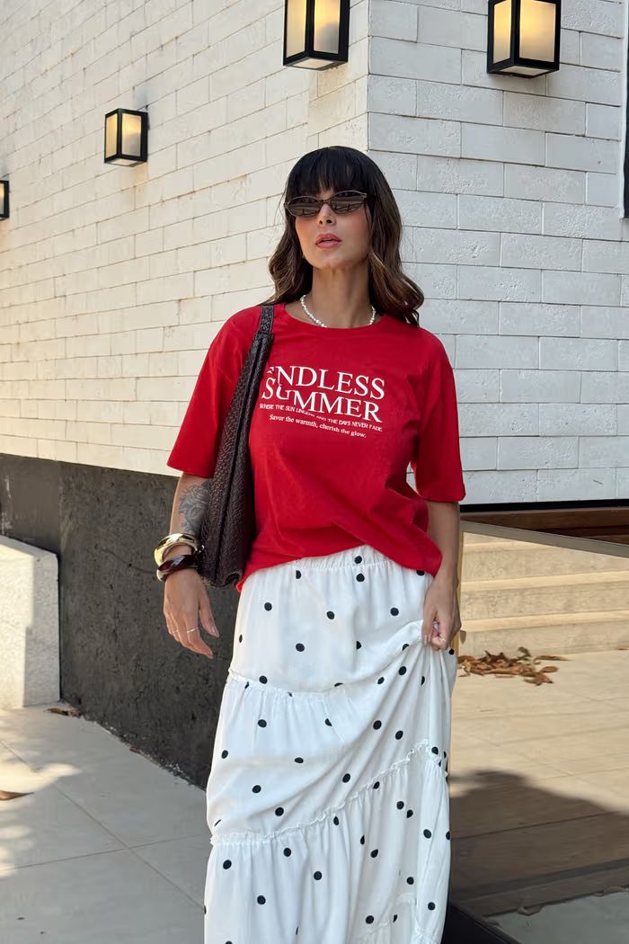 A t-shirt de modelagem mais ajustada na cor vermelha é a escolha certa para um visual marcante e atual. Com caimento que valoriza o corpo na medida certa, a peça traz escrita em branco na parte frontal, criando um contraste moderno e cheio de personalidade. Confortável e versátil, é ideal para composições urbanas e estilosas, do casual ao fashion, sem esforço. / 100% algodão