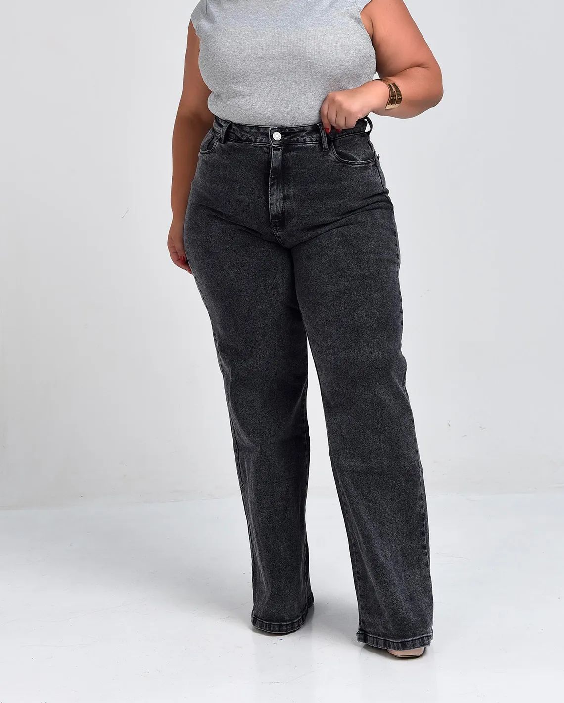Calça jeans feminina plus size, com design moderno e cheio de estilo. Confeccionada em 100% algodão, oferece estrutura, durabilidade e conforto ao vestir. O destaque fica por conta da cor do jeans estonada, que traz um toque fashion e atual à peça, valorizando o visual e tornando-a única. Possui modelagem versátil, perfeita para composições do dia a dia com personalidade.