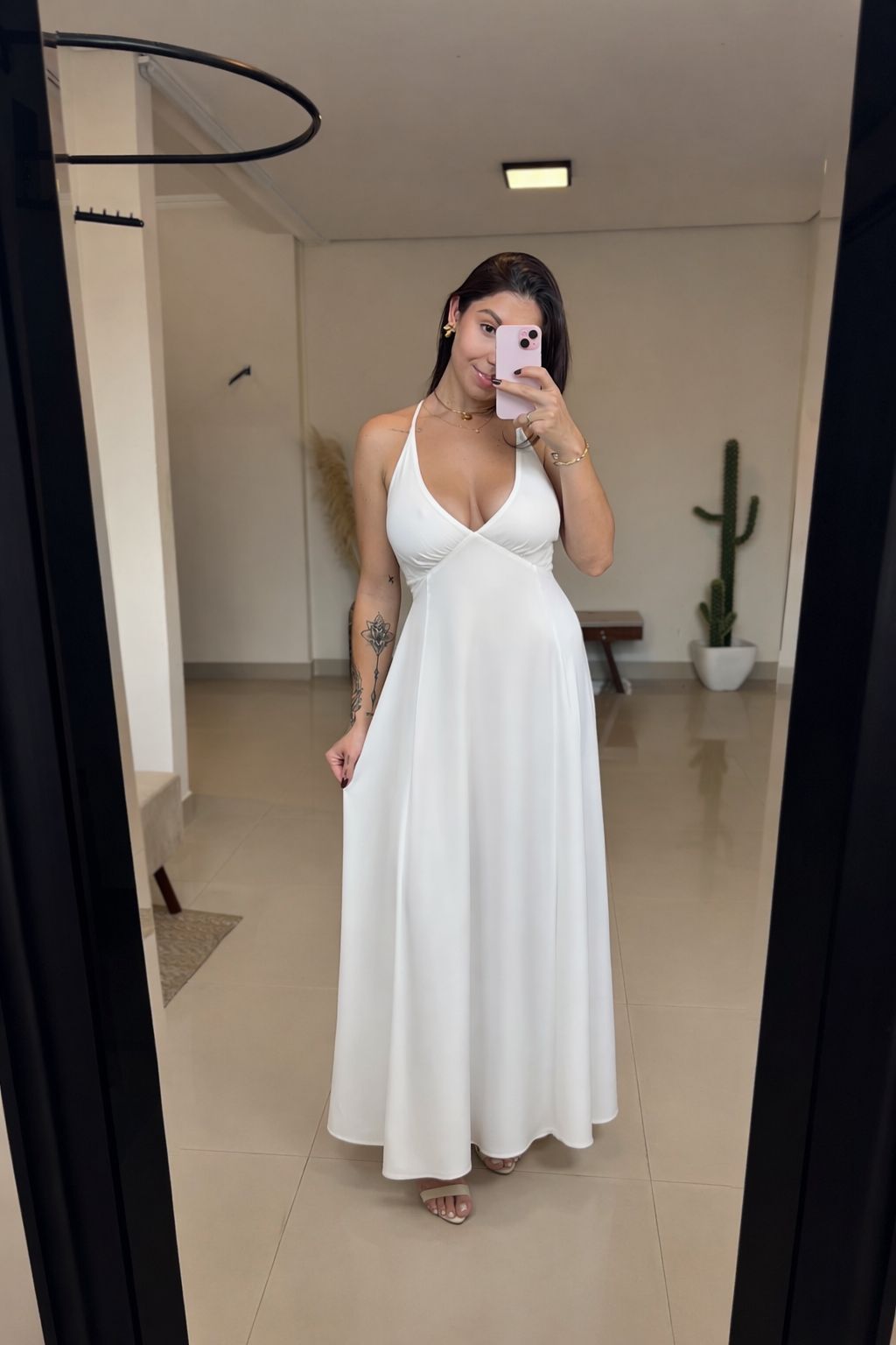 Com design atemporal e estética clean, este vestido é a definição de elegância descomplicada. Desenvolvido para vestir perfeitamente no corpo, conta com alças reguláveis que permitem ajuste personalizado, além de elástico nas costas e amarração, garantindo conforto e melhor adaptação à silhueta. O caimento fluido e fresco traz leveza ao visual, tornando a peça ideal para dias quentes e produções sofisticadas sem esforço. Versátil e refinado, é um essencial no guarda-roupa feminino moderno.