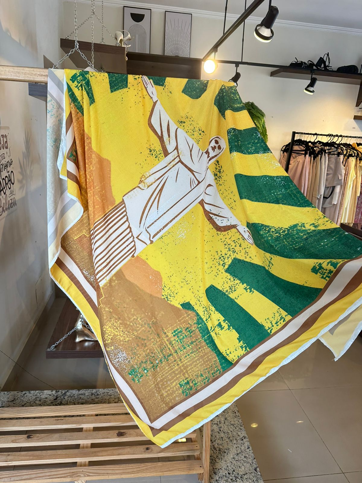Canga com estampa do Cristo Redentor, inspirada no charme e na identidade do Rio de Janeiro. Leve e versátil, é perfeita para usar na praia, piscina ou como saída de banho, além de poder ser amarrada de diferentes formas. Um item prático e estiloso que traz personalidade e brasilidade para os dias de sol.