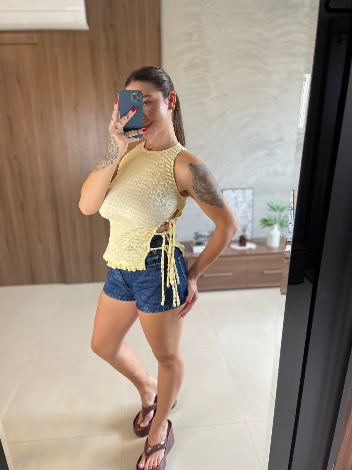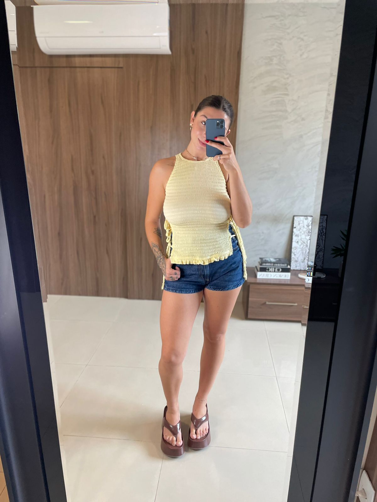 Blusa de smock com aberturas laterais, moderna e cheia de charme. O detalhe em smock garante ajuste confortável ao corpo, valorizando a silhueta, enquanto as aberturas nas laterais trazem leveza, movimento e um toque fashion à peça. Versátil, é perfeita para compor looks estilosos e descontraídos, combinando com jeans, saias ou shorts.
