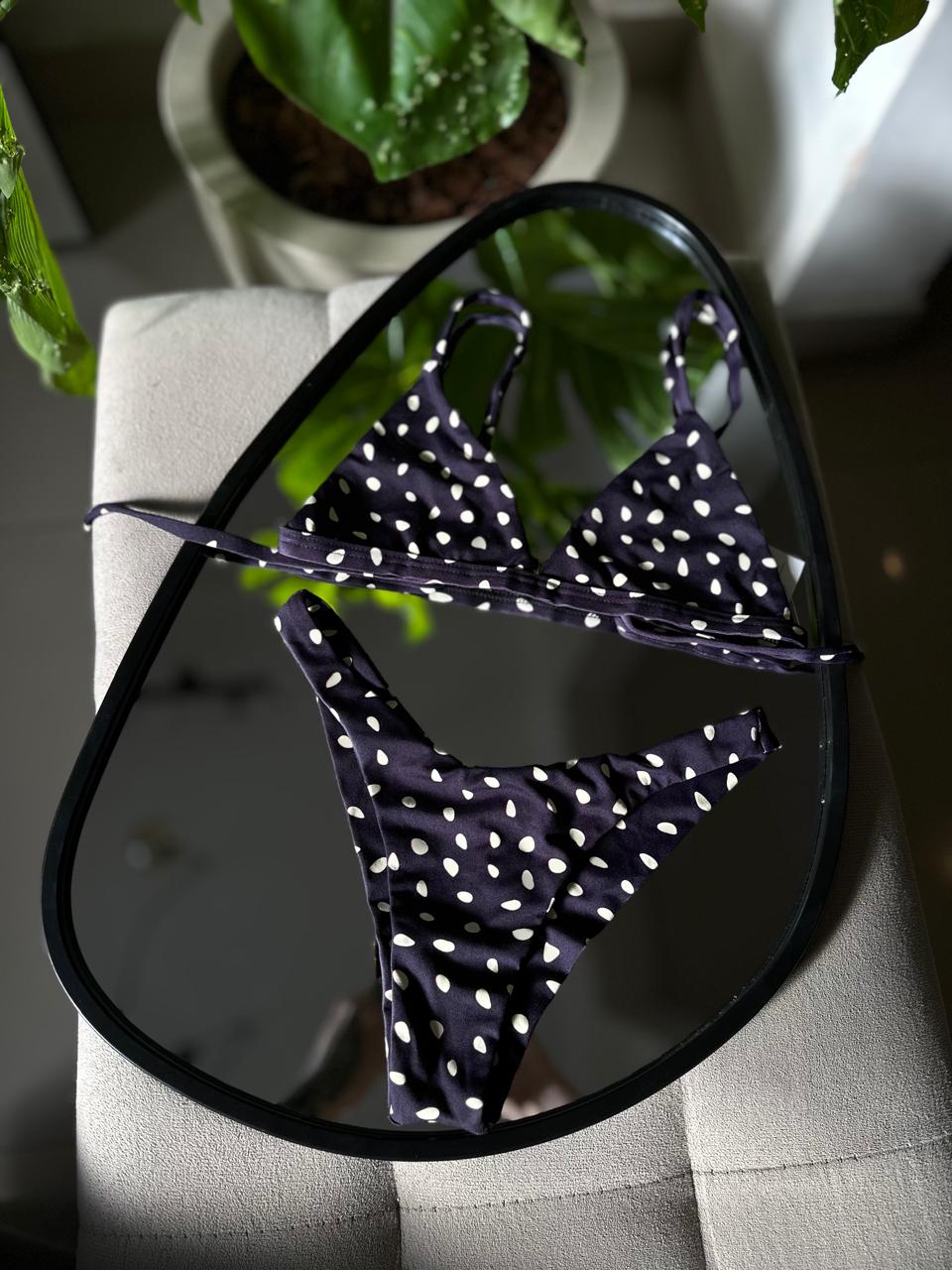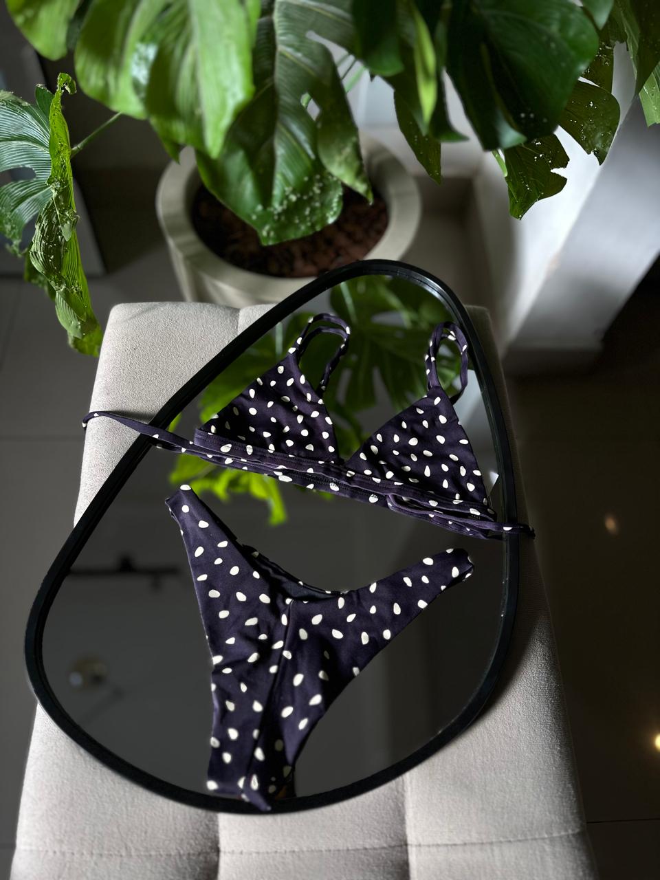O Biquíni Poá Black é a união perfeita entre charme retrô e estilo contemporâneo. Na cor preta com bolinhas brancas, estampa clássica e atemporal, ele traz um visual feminino, elegante e cheio de personalidade.
