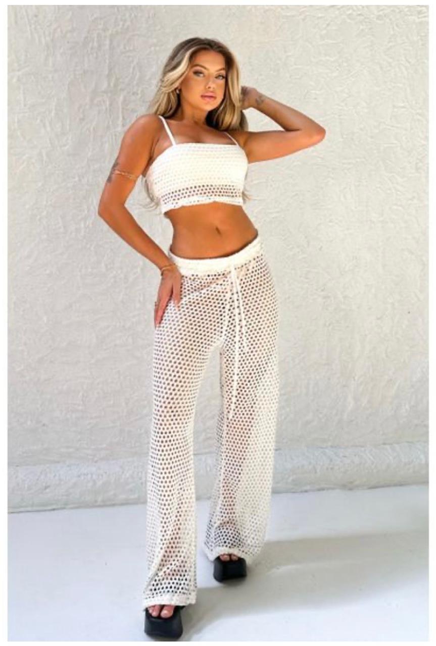 A Calça de Tela é a peça-chave para composições modernas, sensuais e cheias de estilo. Confeccionada em tela vazada, ela possui transparência elegante, perfeita para usar como saída de praia ou em looks fashionistas para beach clubs e produções de verão.