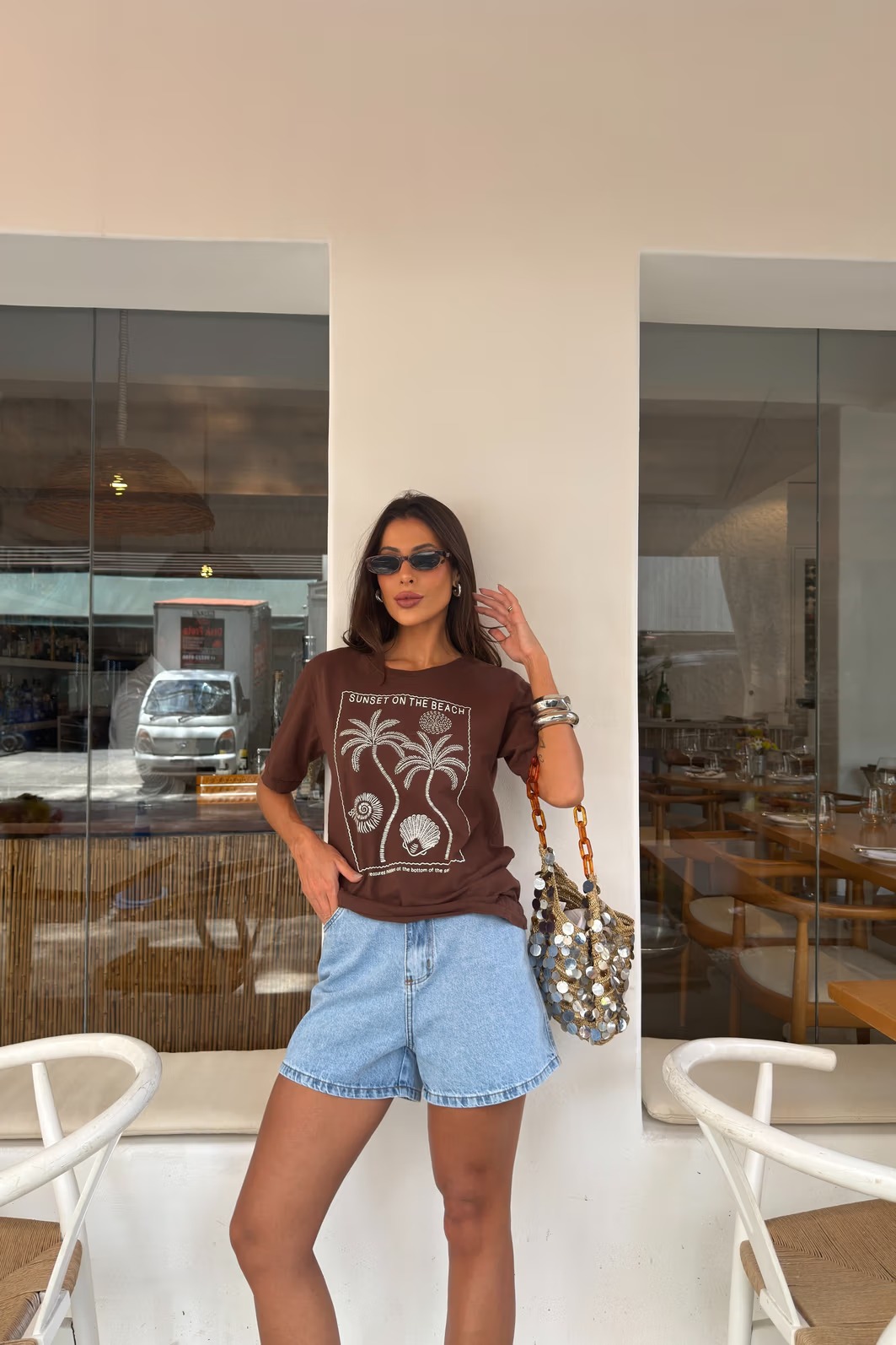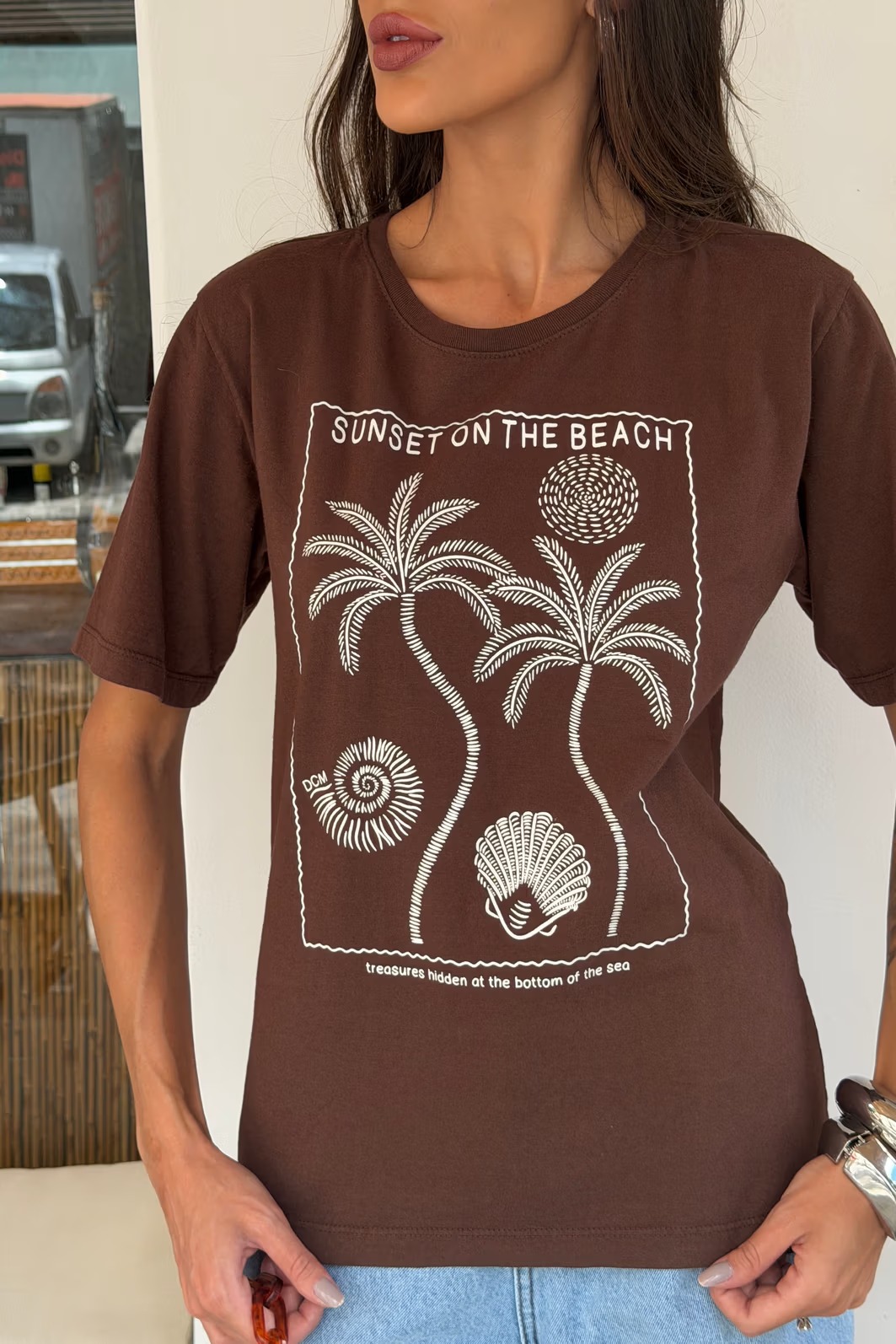 Com mood leve e cheio de energia, a t-shirt estonada Sunset Beach traduz o espírito dos dias ensolarados à beira-mar. Confeccionada em meia malha 100% algodão, oferece toque macio, caimento confortável e aquele frescor ideal para o dia a dia. A estampa inspirada no pôr do sol adiciona um toque vibrante e tropical ao visual, perfeita para quem ama combinações descomplicadas e cheias de estilo. Use com shorts, jeans ou saias para um look casual e iluminado, perfeito para qualquer ocasião.