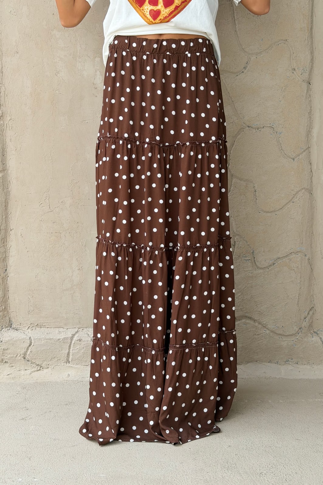 Se você está procurando uma saia longa leve, fluida e com movimento, essa é a peça certa. A Saia Longa Poá Blair da Dolce-me é confeccionada em viscose 100%, com babados franzidos e sobrepostos, o que garante leveza, fluidez e um visual marcante no movimento. O acabamento com limpeza de over e bainha, sem forro, traz um caimento natural e confortável, deixando a peça ainda mais especial.