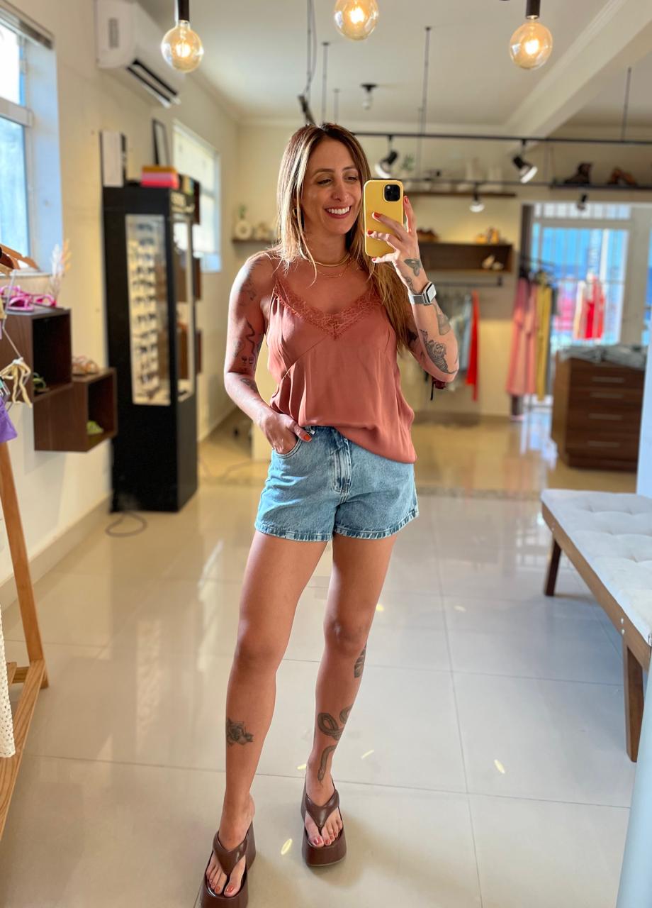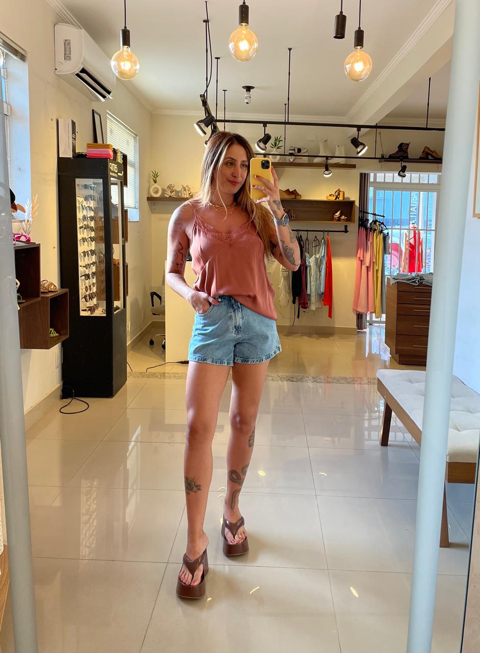 Essencial no guarda-roupa feminino, o shorts jeans curto em lavagem média une praticidade e estilo para o dia a dia. Com visual atemporal e fácil de combinar, é perfeito para composições casuais e modernas.