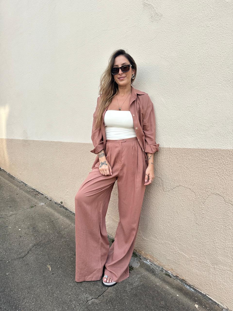 Calça Com Botão Lateral (MARROM EsCURO/ MARROM CLARO)