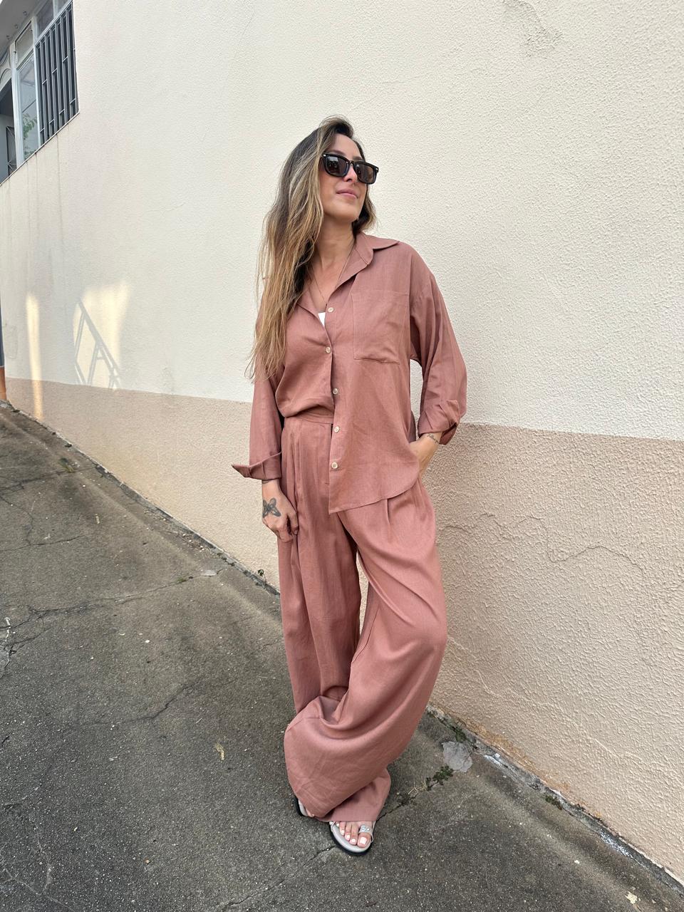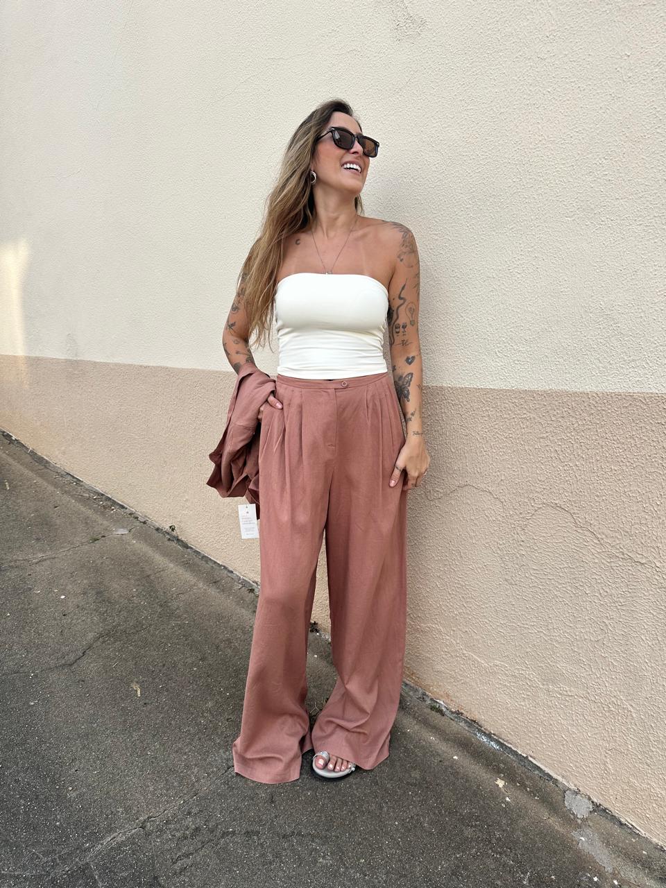 Calça Com Botão Lateral (MARROM EsCURO/ MARROM CLARO)